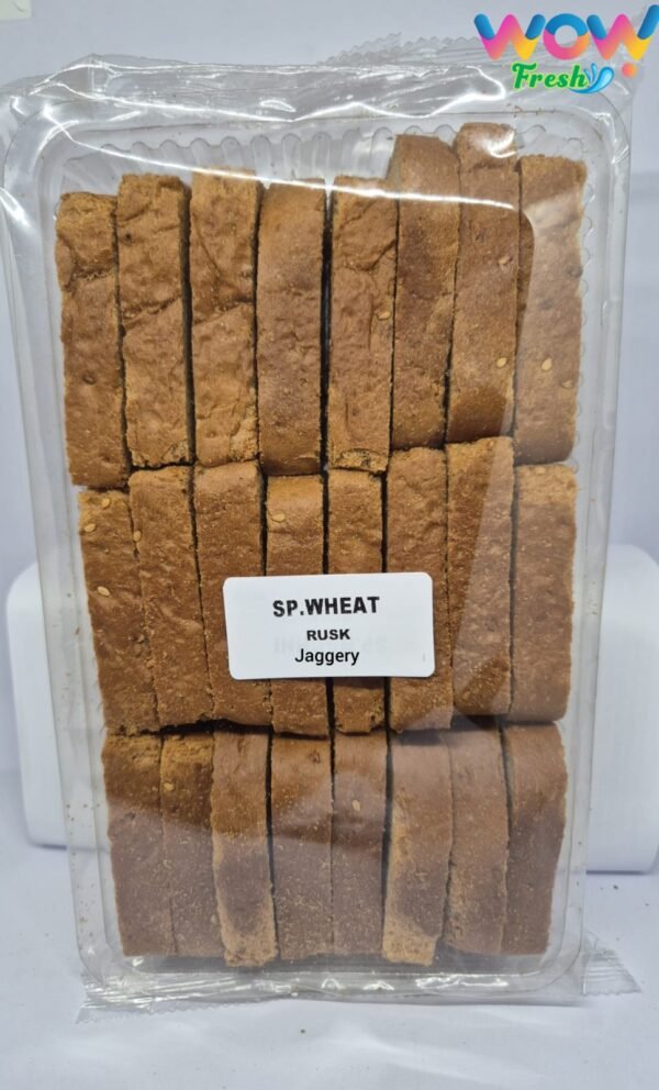 A wholesome wheat rusk sweetened naturally with jaggery, offering a rich flavor and perfectly crisp texture. A healthier teatime companion with traditional goodness in every bite.